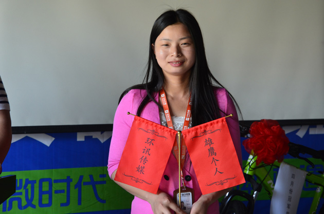 獲得2014年四月份PK賽雄鷹個(gè)人的是環(huán)訊傳媒今年的新進(jìn)員工——呂曉芳。陳總點(diǎn)評(píng),縱觀整個(gè)四月,呂曉芳工作認(rèn)真,態(tài)度積極,表現(xiàn)突出,每日定出工作目標(biāo)后,努力完成。