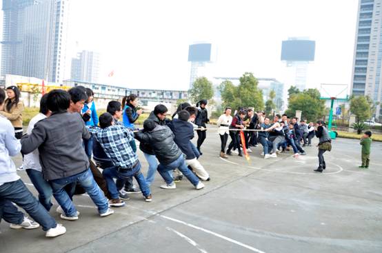 和女子組不同,男子組的拔河隊伍是商務(wù)部同人才網(wǎng)組成的隊伍PK技術(shù)部和客服部隊伍。由于人數(shù)空缺,CEO陳偉峰臨時加入了商務(wù)部人才網(wǎng)的隊伍,湊成了13:13的格局。第一局,兩支隊伍就展開了激烈的角逐,然以技術(shù)部和客服部隊伍勝出。第二局,當兩支隊伍勢均力敵,不分上下之際,只聽商務(wù)部門和人才網(wǎng)在CEO陳偉峰的帶領(lǐng)下,喊起了“一二三”的口號,“不知道為什么,剛開始感覺兩隊實力都差不多,但是當他們喊出口號的時候,瞬間就覺得商務(wù)部和人才網(wǎng)那邊強大了。”在一旁的啦啦隊說道。毫無疑問,這一局商務(wù)部和人才網(wǎng)隊伍獲勝。自此,1:1平手。隨后,進行了一場加分賽,商務(wù)部人才網(wǎng)勝出。