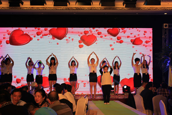 集體舞蹈《感恩的心》是環(huán)訊傳媒獻(xiàn)給所有來賓的禮物。只見12位美女在臺(tái)上列好陣勢,隨著音樂,緩緩伸展開來。感謝的話已經(jīng)說了太多,但是面對著來賓,似乎沒有言語能夠超過這一聲聲真誠的感謝。
