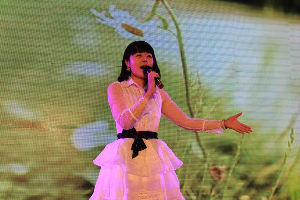 最新出爐的永康市十佳歌手黃潔上臺(tái)帶來了一曲《陽光路上》。歌聲載著美好的愿望,對,我們希望,環(huán)訊的未來,陽光普照。